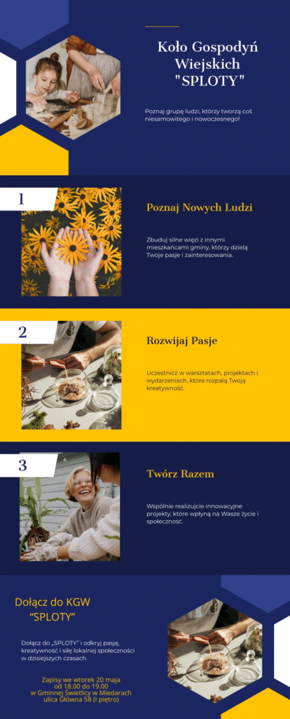 Z radością ogłaszamy, że 25 marca 2025 roku oficjalnie rozpoczęliśmy działalność Koła Gospodyń Wiejskich Sploty! Jesteśmy grupą pełną pasji, pomysłów i chęci do działania, a naszą misją jest łączenie tradycji z nowoczesnością oraz budowanie silnej, zintegrowanej społeczności w gminie Zbrosławice.